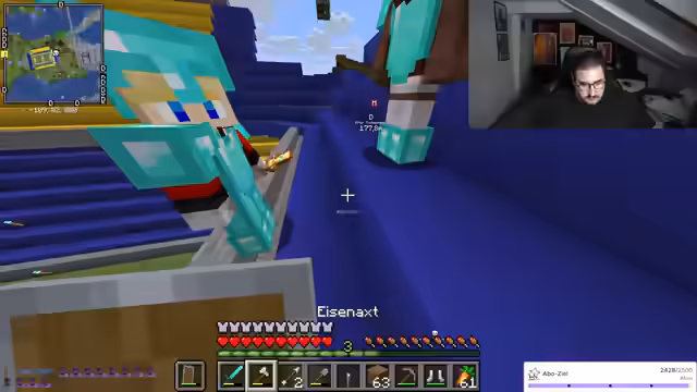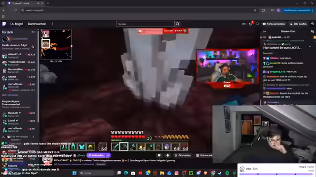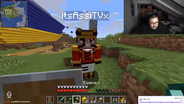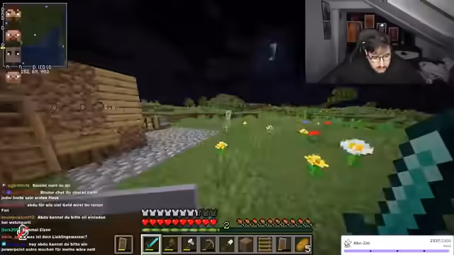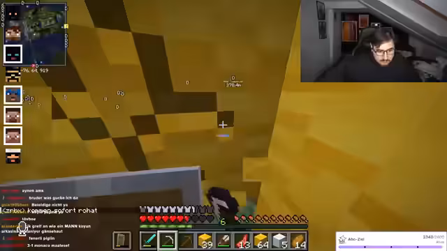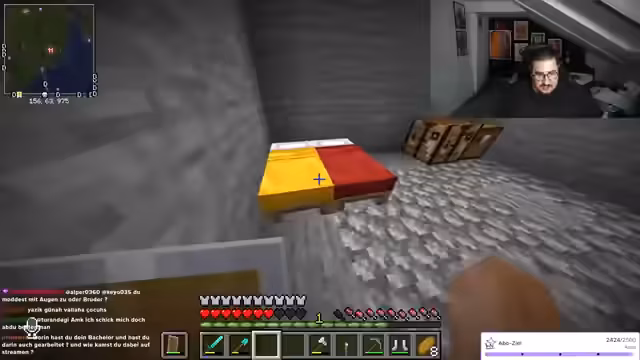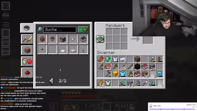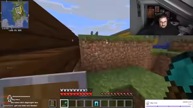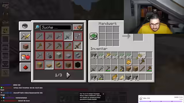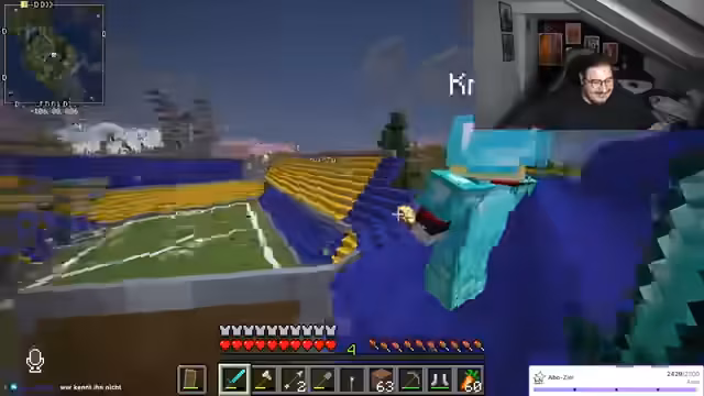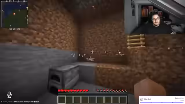 02:24:34Während des Streamings baut der Streamer Strukturen und interagiert intensiv mit dem Chat, der Anleitungen zum Füllen von Räumen und Materialverwaltung gibt. Er erwähnt kurzfristige gesundheitliche Probleme ('Beine gebrochen'), geht aber schnell auf den Bauprozess ein und bittet um Unterstützung bei Entscheidungen. Es gibt technische Schwierigkeiten, etwa mit Kamera und Mikrofon, die jedoch humorvoll umgangen werden. Der Fokus liegt auf der gemeinsamen Kreativität im Spiel, während der Streamer seine Begeisterung für Minecraft-Aktionen ausdrückt und den Chat aktiv einbezieht.