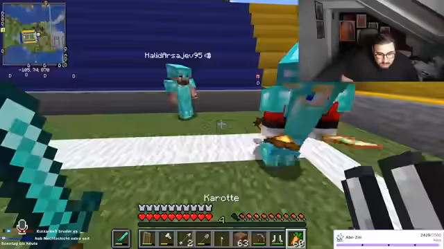 02:33:22Der Streamer berichtet über diplomatische Auseinandersetzungen auf dem Server, bei der angeblich türkische Fraktionen Schutzgeld in Höhe von 20 Diamanten täglich fordern. Er distanziert sich von diesen Forderungen und erklärt, selbst Schutzgeld an Araber zu zahlen, betont aber die Loyalität von Verbündeten wie G-Time. Es folgt eine Aussprache über Karotten-Diebstähle auf Feldern, wo er um respektvolles Verhalten bittet und Wiedereinpflanzen fordert. Die Situation eskaliert kurz, als er arabische Fraktionen als Angreifer bezeichnet, bevor er zur Watchparty überleitet.