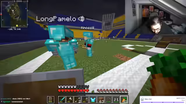 00:14:01Der Bau eines Stadions in Minecraft wird konkretisiert: Abdu9974 plant, ein Spielfeld mit weißer Wolle zu markieren, wenn sein Team gewinnt. Intensiv wird das anstehende Spiel zwischen Galatasaray und Fenerbahce diskutiert, wobei die aktuelle Tabellenposition und die Wichtigkeit eines Sieges für die Champions-League-Qualifikation betont werden. Debatten über die Leistung beider Mannschaften, einschließlich historischer Vergleiche und Spielerbewertungen, dominieren den Stream.
