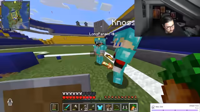 00:06:18Um 20 Uhr startet die Watchparty für das Fußballspiel Monaco gegen Galatasaray, während parallel Minecraft gespielt wird. Abdu9974 stellt die Partnerschaft mit dem E-Sport-Team Eintracht Spannauer vor, das in der League of Legends Bundesliga aktiv ist und letztes Jahr die deutsche Meisterschaft gewann. Gleichzeitig plant er den Bau eines Stadions in Minecraft, falls sein Team gewinnt, und diskutiert mit dem Chat über Materialbeschaffung wie Sand und Tinte für Bauprojekte.