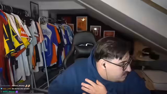 00:02:48Der Streamer zeigt exklusive Retro-Trikots, darunter ein Originaltrikot aus der Europa-League-Siegersaison. Er plant, eine komplette Retro-Wand mit gerahmten Trikots zu gestalten und kündigt neue Trainingsjacken für Januar/Februar an. Zusätzlich wird ein Umzug des Studios angekündigt, wo eine türkische Flagge und Forza-Merchandise-Elemente präsentiert werden sollen.