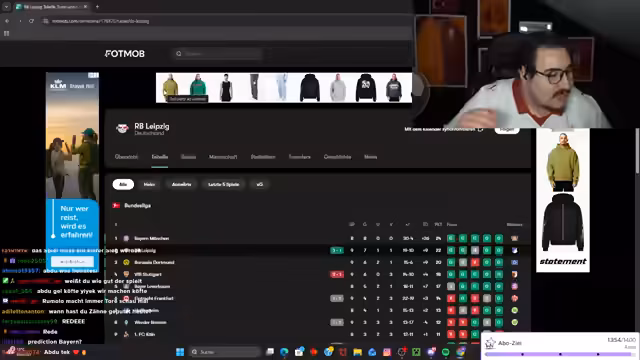 00:09:39Der Streamer zeigt sich begeistert über ein Tor von Romulo für Leipzig und lobt dessen "Super League Qualität", die er seit Beginn des Streams hervorhebt. Er entwickelt eine Sympathie für Leipzig, nicht nur wegen Romulo und Barco, sondern auch, weil der Verein ihn gepostet hat. Die Mannschaft wird ihm von Tag zu Tag sympathischer, und er erwägt sogar, in Zukunft Leipzig-Content zu erstellen und den Verein in der Bundesliga zu unterstützen, da er der Meinung ist, dass Leipzig mehr Supporter braucht. Die Diskussion verlagert sich kurz auf die französische Liga und die Dominanz von PSG, bevor der Fokus wieder auf das Spiel Galatasaray gegen Trabzonspor gerichtet wird, wobei die Zuschauer aufgefordert werden, ihre Tipps abzugeben.