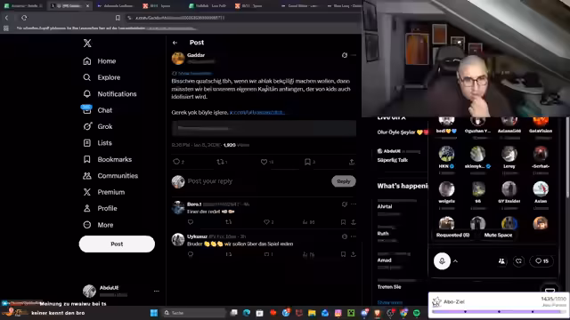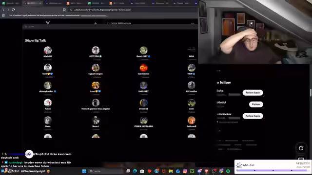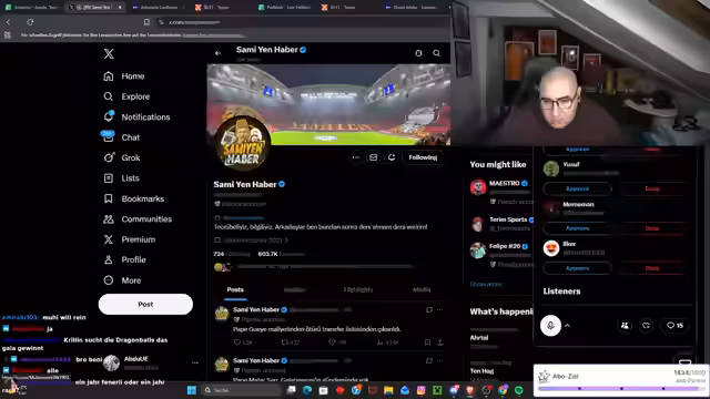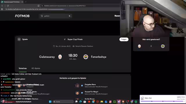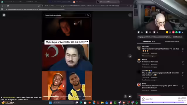 01:24:17Der Streamer beginnt mit der Bewunderung für ein kürzliches Edit, um dann eine heftige Auseinandersetzung mit seinem Kollegen Talla zu schildern. Dieser behauptet, dass Mauricio Ikadi gegen Trabzonspor gespielt habe und ihn als Spieler des Tages sieht. Der Streamer widerspricht dem, da er Ikadi nicht in Top-Verfassung sah. Anschließend kritisiert er Spieler wie Seferovic und Bojan Jokić, betont deren fehlende Erfahrung im Derby und fordert, dass Gündouzi und andere den Pokal für den Verein holen sollen. Eine lange Liste von früheren kranken oder erfolglosen Spielern wie Podolski und Van der Vaart wird als Vergleich angeführt.