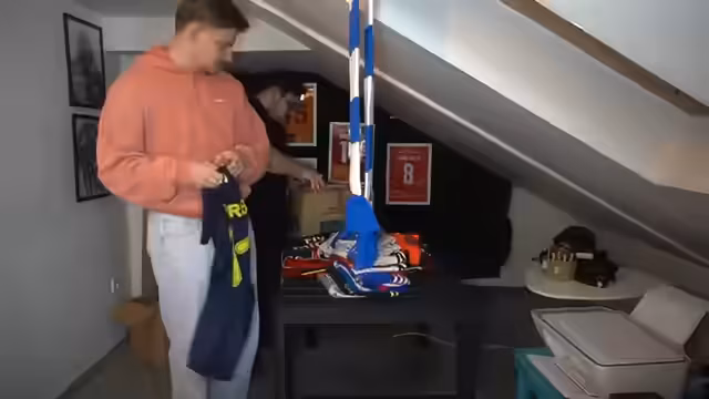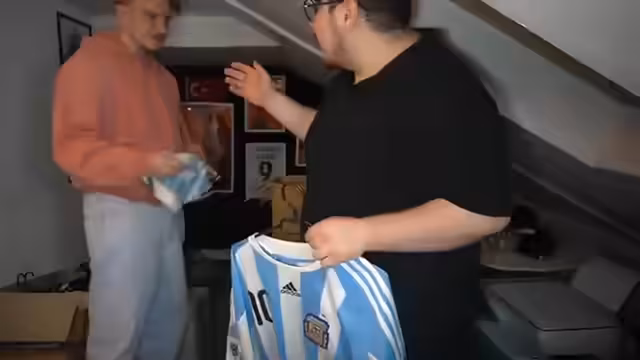01:11:07Ein Spanien-Trikot mit der Nummer 14 von Xabi Alonso wird als besonders begehrenswert hervorgehoben, wobei der Wunsch, es als erstes zu öffnen, zum Ausdruck kommt. Es wird eine humorvolle Anekdote über Hass auf Alonso geteilt, die jedoch schnell als unbegründet abgetan wird, da Alonso als hervorragender Trainer gelobt wird. Die Streamer stellen fest, dass ihnen die Kleiderbügel ausgehen, was auf die große Menge an Trikots hinweist. Ein Lied namens 'Tack, tack, tack, kaputter Kinva' wird erwähnt, das viral gegangen ist und von einem der Streamer stammt. Es wird auch ein Schal von Hertha BSC gefunden, der verschenkt wurde. Die Idee, einen Raum mit Stangen an den Wänden für die Trikotsammlung zu schaffen, wird diskutiert, was die Leidenschaft für das Sammeln und Präsentieren der Trikots unterstreicht. Ein weiteres Modric-Trikot mit Etiketten wird gefunden, was die Vielfalt und Qualität der Sammlung zeigt.