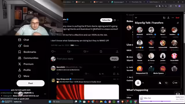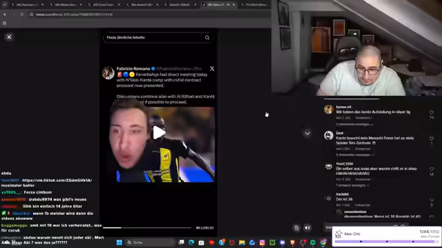 00:13:07Es geht um konkrete Transfergerüchte um Spieler wie Osimhen und Kante. Der Streamer teilt mit, dass Osimhen im Sommer hochinteressant für Barcelona sein soll und nicht für 140 Millionen Euro abgegeben werden würde. Gleichzeitig wird der bevorstehende Transfer von N'Golo Kanté zu Fenerbahce als fix angenommen. Gleichzeitig wird der Transfer von Lokman als wahrscheinlich angesehen, der als wichtiger Verstärker für die Offensive gesehen wird. Der Streamer äußert jedoch Bedenken, dass der aktuelle Kader noch einen Innenverteidiger benötigt und kritisiert die oft ungeschickte Kommunikation der Vereinsführung im Bezug auf Transferziele.