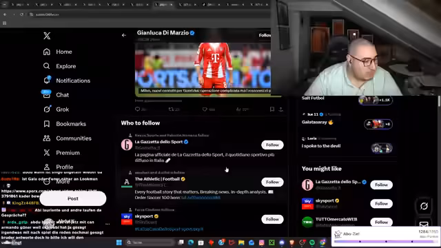 04:19:54Es werden Transfergerüchte um Ademola Lokmann und Leon Goretzka aufgegriffen. Der Streamer erwähnt Fabrizio Romano und kritisiert die unzuverlässige Berichterstattung anderer Quellen wie Haji News. Die Debatte dreht sich um die Glaubwürdigkeit von Journalisten und die Rolle von Troll-Accounts in der Transferberichterstattung.