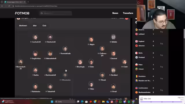 00:30:17Das Spiel hat begonnen und die Türkei führt bereits 1:0. Es wird sich euphorisch über Arda Güler geäußert und seine Fähigkeiten mit denen von Luka Modrić verglichen. Es wird betont, dass er sogar in der Abwehr verteidigt. Es wird sich kritisch über Türken geäußert, die Fitna machen. Es wird erneut Unverständnis darüber geäußert, dass Can Uzun nicht nominiert wurde, nicht einmal für die U23. Es wird ein Fahrzeugtenum gefordert, der die Mannschaft anheizt. Es wird gesagt, dass Arda Güler in der aktuellen Generation einer der Besten, wenn nicht sogar der Beste wird. Es wird sich über die Luxusprobleme in der Innenverteidigung gefreut. Es wird gesagt, dass die Türkei Spanien besiegen wird. Es wird sich über eine türkische E-Sportmannschaft (BBL) gefreut, die gegen Fanatics gewonnen hat. Es wird sich darüber lustig gemacht, dass die georgischen Spieler erst 12 Jahre alt sind. Es wird betont, dass das Spiel gegen Georgien das wichtigste ist. Es wird die Starbesetzung der türkischen Mannschaft hervorgehoben.