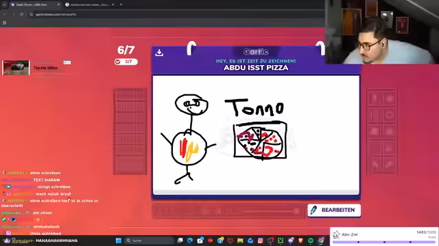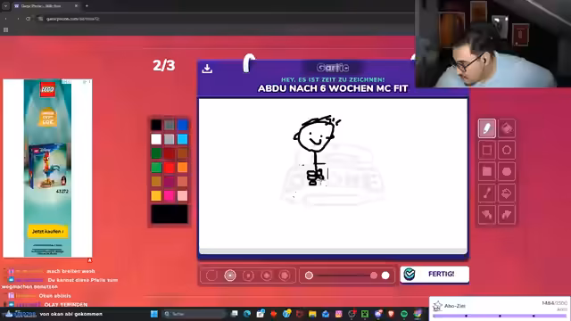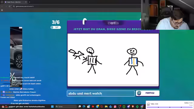 04:04:35Das Zeichenspiel wird fortgesetzt, wobei die Teilnehmer weiterhin humorvolle und manchmal auch frustrierende Erfahrungen machen. Es wird festgestellt, dass die Zeit zum Zeichnen oft zu kurz ist, was zu schnellen und manchmal unvollständigen Ergebnissen führt. Die Spieler lachen über die Interpretationen der Zeichnungen und die oft skurrilen Ergebnisse. Es gibt auch Momente der Selbstkritik, wenn die eigenen Zeichnungen nicht den Erwartungen entsprechen. Die Interaktionen sind geprägt von Scherzen und gegenseitigem Necken, wobei die Anonymität des Spiels es den Teilnehmern ermöglicht, kreativer und manchmal auch provokanter zu sein. Die Stimmung bleibt jedoch überwiegend positiv und unterhaltsam, da das Spiel als eine Möglichkeit gesehen wird, gemeinsam Spaß zu haben und die Kreativität der Community zu fördern. Trotz kleinerer technischer Schwierigkeiten und der Herausforderung, komplexe Ideen in kurze Zeichnungen umzusetzen, genießen die Teilnehmer das Spiel und die daraus resultierenden Lacher.