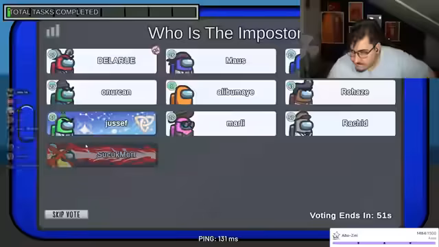 00:29:19Die Diskussion über die erste Abstimmung geht weiter. Trotz der Möglichkeit zu skippen, wird entschieden, jemanden zu wählen. Mali wird verdächtigt, da er zu viel redet. Abdo wird ebenfalls gewählt, aber am Ende wird Youssef rausgewählt, was sich als Fehler herausstellt, da er kein Imposter war. Die Spieler sind frustriert über die Niederlage und den Verlust von Geld. Es wird festgestellt, dass die Spieler zu dumm sind, die Imposter zu identifizieren, und dass der Imposter in dieser Runde einen „Jackpot“ gezogen hat. Die Spieler beklagen sich über eine nicht funktionierende Karte im Spiel und die allgemeine Dummheit der Gruppe.