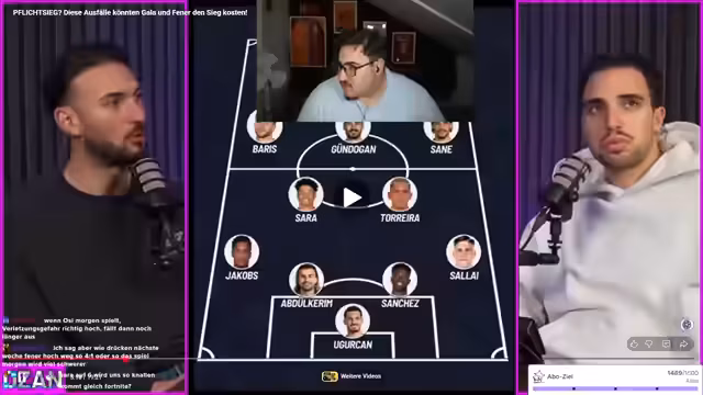 00:06:31 Boah, was ist das für eine... Das war zu viel, warte mal. Ich entschuldige mich, das war zu viel. Einfach nach diesem Stream, AfD-Code wird um 5 Prozent steigen. Warte, was hat Ali-Baba hier mit Alibas gemacht? Ja, warte mal kurz. Ich habe übertrieben. Nein, sorry, Leute. Sorry, sorry. Schere. Okay, ich habe eine Frage. Wie viele Sub spielen wir? Drei. Wir machen nur drei, weil es sind viele Amateure dabei. Ah, Pits! Salam Aleikum! Mein Broder!