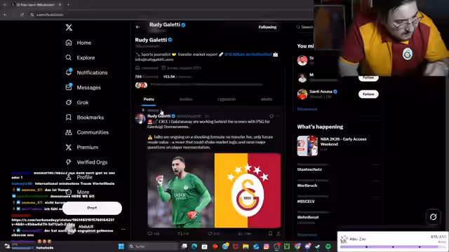 00:51:14Der Streamer reflektiert über die unglaubliche Entwicklung von Galatasaray in den letzten Jahren und wie sich seine Träume von Top-Spielern wie Ozyman, Mauritar, Leroy Sané und Donnarumma möglicherweise erfüllen könnten. Er erinnert sich an die Zeiten, als er für solche Aussagen noch belächelt wurde. Er erklärt, warum Donnarumma von Paris zu Galatasaray wechseln könnte und verweist auf seine frühere Prophezeiung einer "französischen Revolution" bei Galatasaray. Er betont, dass Galatasaray in der Champions League alles auseinandernehmen will und dass dies auch für Top-Spieler attraktiv ist. Er lobt den Vorstand von Galatasaray für die schnelle Verpflichtung von Singo und warnt vor den Konsequenzen eines Zögerns. Er spekuliert über mögliche weitere Transfers am Deadline Day und nennt sogar die Namen Ilkai Gündogan und Hakan Calhanoglu. Er glaubt, dass Galatasaray ohne einen klassischen Zehner spielen wird und dass ein Torwart und ein Mittelfeldspieler die Prioritäten sind. Er analysiert die Champions League-Auslosung und gesteht, dass er mehr Angst vor Bodo Glimt und Union Berlin hat als vor vermeintlich stärkeren Gegnern wie City, Liverpool, Atletico Madrid und Frankfurt. Er erklärt, dass dies typisch für Galatasaray ist und dass wahre Fans diese Angst verstehen.