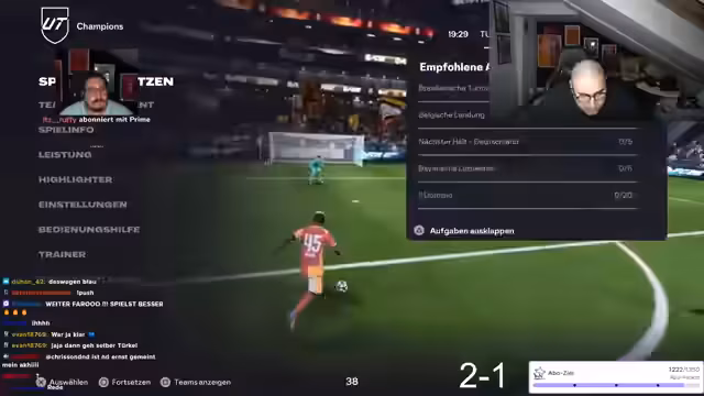00:29:03Nach den Erklärungen und einem gemeinsamen "Bismillah" starten alle Spieler ihr erstes Spiel. Der Streamer selbst beginnt mit einem Spieler namens Smith. Es kommt zu technischen Problemen und Diskussionen über Disconnects, die als "Pech" abgetan werden. Während die Spiele laufen, gibt es viel Smalltalk unter den Teilnehmern. Faro und Daniel erleiden früh Niederlagen, was die Spannung in der Gruppe erhöht. Der Streamer äußert sich positiv zu Karten im Spiel, erwähnt Enver Kema als "besten Mann", und die Teilnehmer unterhalten sich über die aktuelle FIFA-Saison und Spieler-Leistungen.