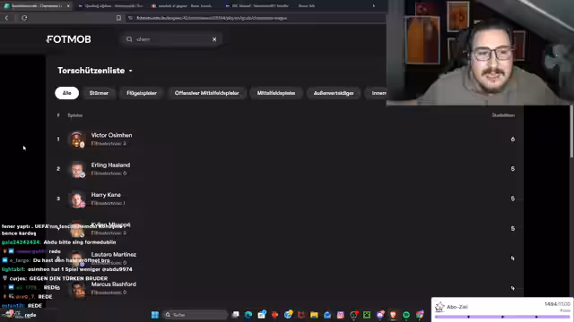 00:34:07Der Streamer beginnt eine detaillierte Analyse der türkischen Fußballvereine im europäischen Wettbewerb, beginnend mit Karabağ FK. Er lobt ihre Leistung, obwohl ihr Kaderwert gering ist, und hebt hervor, dass sie vor großen europäischen Clubs wie Atletico Madrid und Napoli in der Rangliste stehen. Er ist überrascht über die schlechte Platzierung von Napoli in der Champions League, obwohl sie Tabellenführer in der Serie A sind, und kritisiert ihre Transferpolitik, insbesondere die Verpflichtung von Hojlund vor Victor Osimhen. Er verteidigt die türkischen Super League-Mannschaften gegen Hater, die behaupten, sie seien "Chöp" (schlecht), und präsentiert Statistiken, die zeigen, dass Victor Osimhen, ein Spieler von Galatasaray, aktuell Torschützenliste Nummer 1 in der Champions League ist. Er weist darauf hin, dass die Kritik an Osimhens Elfmetertoren unfair ist, da auch andere Top-Spieler wie Mbappé Elfmetertore erzielt haben, ohne ähnliche Kritik zu ernten. Er betont, dass der Hass gegenüber türkischen Mannschaften eine lange Geschichte hat und nicht erst mit seinem TikTok-Content begann. Er fordert die Hater auf, Größe zu zeigen und den Erfolg der türkischen Teams anzuerkennen, so wie er auch den FC Bayern München als "geisteskrank" und tragende Säule der Bundesliga anerkennt.