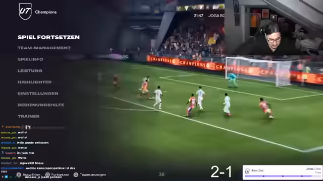 02:56:25Nach einer hochdramatischen Partie gegen einen E-Sportler, die er knapp mit 1-0 im Elfmeterschießen gewinnt, bricht der Streamer in Begeisterung aus. Er feiert den Sieg über einen 'Profi' und kontert Vorwürfe des Betrugs mit dem Hinweis, dass der Gegner mit seinem Job spiele. Er ruft den Galatasaray-Spieler Musiala als 'besten Stürmer der Welt' aus und preist die Fan-Freundschaft zu einem Hertha-Fan, den er als 'besten Mann' bezeichnet.
