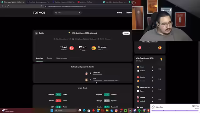 00:07:58Es wird die Freude über den Erfolg der Modemarke der Jungs zum Ausdruck gebracht, die sich anfühlt, als hätte man selbst eine Marke gegründet. Es wird klargestellt, dass das Design ein Brasilien-Wappen und kein Kreuz zeigt. Anschließend folgt eine Analyse des türkischen Nationalmannschaftsspiels, wobei die Rote Karte gegen Baris Alper als spielentscheidend kritisiert wird. Es wird Unverständnis darüber geäußert, wie man in einer solchen Situation so ungestüm agieren kann. Die Hoffnung auf einen 3:0-Sieg Spaniens gegen Bulgarien wird geäußert. Es wird die Frage aufgeworfen, warum die Twitch-Alerts nicht funktionieren und sich für das Abo bedankt. Aufgrund von Urheberrechtsbestimmungen können keine Highlights gezeigt werden. Es wird die Meinung geäußert, dass die Türkei bis zur Roten Karte das Spiel dominiert hat, danach jedoch eingebrochen ist. Abschließend wird die Aufnahme von Head-to-Head-Analysen der Spiele Deutschland gegen Türkei und Spanien gegen Türkei angekündigt.
