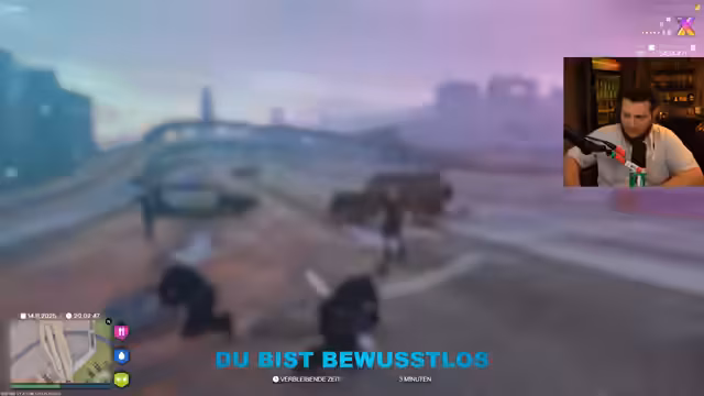 05:46:42Während der Wartezeit kommt eine Diskussion über den Zustand von Gaming-Titeln wie Black Ops auf, wobei die mangelnde Begeisterung der Community für neue Releases kritisiert wird. Es wird auch über das Spiel Arc Raiders gesprochen, das als positiv empfunden wird und an alte Fortnite-Zeiten erinnert. Ein Charakter äußert seine Schwierigkeiten im Rollenspiel (RP) und die Herausforderungen, die sich aus der Kommunikation ergeben. Es wird humorvoll angemerkt, dass es schwierig ist, anderen zuzuhören, wenn man selbst viel redet. Die Charaktere versuchen, ihre verlorenen Teammitglieder zu finden, die im Gefängnis gelandet sind, und überlegen, wie sie den geplanten Raub fortsetzen können. Die persönlichen Schwierigkeiten im RP, wie das Öffnen des Waffenrads oder das Telefonieren, werden ebenfalls thematisiert.