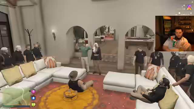 06:04:18Nachdem einige Teammitglieder im Gefängnis waren, bereitet sich die Gruppe auf einen Staatsbankraub vor. Es wird beschlossen, die Outfits zu wechseln, um nicht erkannt zu werden. Die Charaktere diskutieren über die Auswahl der Kleidung und Accessoires, wie Jacken, Handschuhe und Sonnenbrillen, die zum kriminellen Image passen sollen. Die Schwierigkeiten beim Anziehen und Zusammenstellen der Outfits im Spiel werden humorvoll hervorgehoben. Es wird auch die Möglichkeit eines gemeinsamen Streams mit anderen Spielern angesprochen, um Red Dead Redemption RP zu spielen. Die Gruppe versucht, weitere Geiseln für den Raub zu rekrutieren und koordiniert die Zusammenarbeit mit anderen Familien, die sich dem Raub anschließen wollen. Die Herausforderungen der Kommunikation und die Notwendigkeit, nicht abgehört zu werden, werden ebenfalls thematisiert.