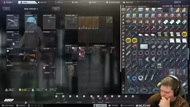 00:00:00Der Stream beginnt mit intensivem Gameplay auf der Karte Customs. Der Streamer ist in Kämpfe verwickelt, die oft unvorhersehbar und verwirrend verlaufen, hauptsächlich aufgrund von technischen Problemen wie fehlerhaften Kopfhörern, die das räumliche Orientieren erschweren. Er kämpft gegen andere Spieler und Scavs, wobei er über Zielungsprobleme, unerwartete Überlebenssituationen und die generelle Schwierigkeit des Spiels klagt, insbesondere bei der Beurteilung von Entfernung und Abdeckungen durch Büsche und Bäume.