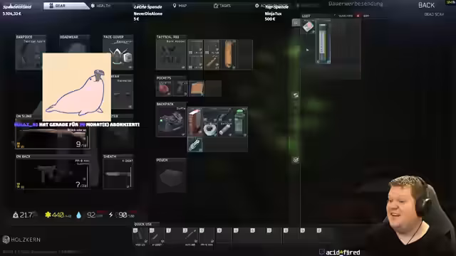 04:19:43Der Streamer startet in ein Spiel, in dem er mit Teamkollegen durch Gebäude looten und Geld verdienen möchte. Er beschreibt seine finanzielle Lage im Spiel als prekär, mit nur wenigen Waffen und Rüstungen. Trotzdem möchten die Teammitglieder lieber looten statt direkt auszusteigen, da das ohne Geldausgaben das Ziel ist. Sie planen, zunächst Admin-Gebäude zu durchsuchen und die Route an die finanzielle Situation anzupassen, was Diskussionen über den besten Weg auslöst.
