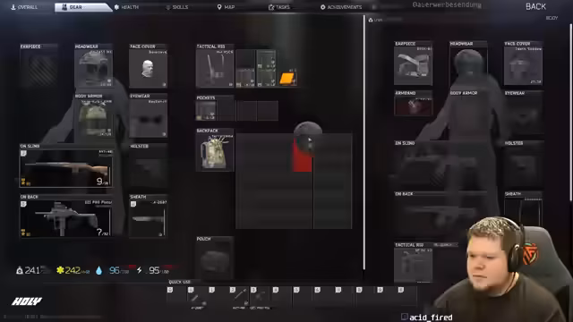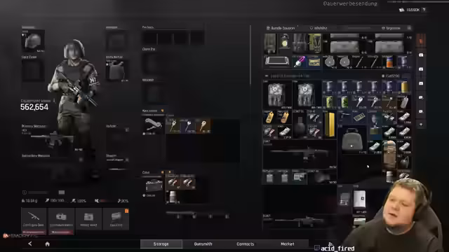 06:53:50Der Streamer berichtet von einem spürbaren Burnout nach intensivem Grinding von bis zu acht Stunden täglich. Er fühlt sich mental erschöpft und unmotiviert, was sich auch auf seine Leistung im Spiel auswirkt. Er reflektiert über den Zustand des Spiels und vergleicht es mit anderen Titeln wie Escape from Tarkov. Er stellt fest, dass im oberen Spielbereich nur noch Spieler mit der besten Ausrüstung (T6) und teurer Munition konkurrenzfähig sind, was das Spiel für Neueinsteiger und mittlere Spieler sehr frustrierend macht.