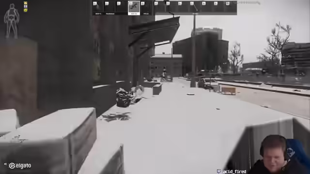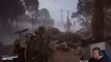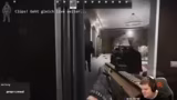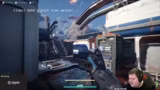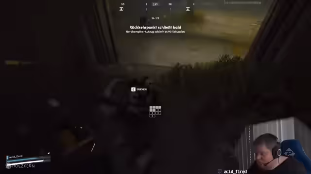 00:01:50Der Stream beginnt mit technischen Vorbereitungen. Der Streamer sucht den Play-Knopf und startet das Spiel, wobei er sich über die Goons im Spiel ärgert. Es folgen erste Aktionen im Spiel, das Erkennen von Gegnern und das Mitteilen der Positionen im Raum. Der Streamer muss sich erstmal hochheilen und erwähnt den gefallenen Schreiter. Er beschreibt seinen Rucksack und die unübersichtliche Situation im Spiel.