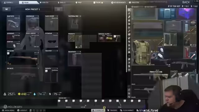 01:16:01Der Streamer spielt Escape from Tarkov und handelt über Loot. Er tauscht einen Abandoned Factory Key ein und berät über Ausrüstung. Er erwähnt die Freude über gute Armor, die mehr Hits tanken lässt. Seine ungewöhnliche Tastatur-layout bereitet ihm weiterhin Schwierigkeiten, da er ständig eine Taste zu weit links drückt. Er plant, seinen Spielstil anzupassen und mehr 4er-Armor zu nutzen, anstatt immer 1-2 Hits zu tanken.