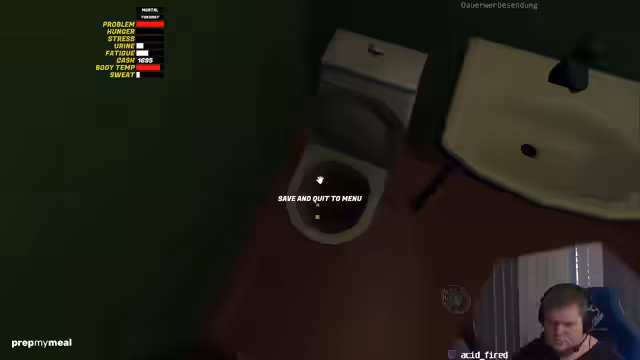 03:51:51Ein zentrales und andauerndes Rätsel im Stream ist der stets volle oder rote 'Problemometer', obwohl der Streamer Hunger, Durst und Kälte zu regulieren scheint. Diese anhaltende Statusanzeige führt zu starker Frustration und Verwirrung, da der Streamer keine klare Ursache dafür findet. Er versucht, das Problem durch diverse Aktionen wie Trinken, Essen oder das Ausziehen der Jacke zu lösen, was jedoch nur kurzfristig oder gar nicht wirkt und den Streamer ratlos zurücklässt.