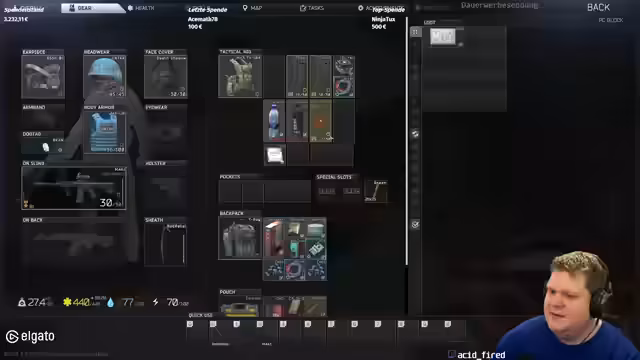 01:30:37Der Streamer reflektiert über Spielstile und äußert, dass für ihn immer nur PvP existiert. Er beschreibt den Partisan-Boss als nervig, da dieser keine Hände und Beine zu haben scheint und sich nicht bewegt. Nach dem Sieg über den Partisan erwartet er, den Camper der Mission zu finden, findet aber niemanden. Er findet es problematisch, dass man erst den Partisan besiegen muss, um den Camper zu finden, obwohl dieser von ihm nicht angegriffen wird. Die neue Scav-KI vergleicht er mit einem Huhn, das nach dem Kopf abhacken noch herumläuft.