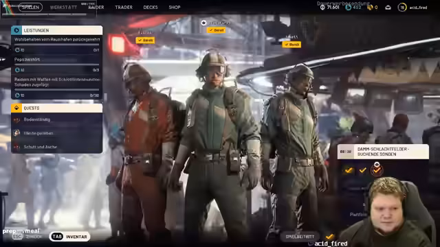04:44:05Es beginnt mit einer humorvollen Diskussion über Essens- und Getränkebestellungen. Während ein Caesar Salad mit alkoholfreiem Radler vorgeschlagen wird, äußert jemand Bedenken bezüglich der moralischen Schmerzen, die eine solche Bestellung onstream verursachen könnte. Stattdessen wird ein Wasser ohne Sprudel und ein lauwarmes, alkoholfreies Radler ohne Kohlensäure bestellt, was als 'ein Gedicht' bezeichnet wird. Die Unterhaltung wechselt dann zu einem kurzen Austausch über das Spielgeschehen, wobei ein Spieler einen 'magnetischen Beschleuniger' findet und die Möglichkeit erörtert wird, länger im Spiel zu bleiben, um weitere Beute zu sammeln. Die Spieler genießen die Flexibilität, schnell ins Spiel rein- und rauszukommen, und führen humorvolle Tests mit Teambeschuss durch.