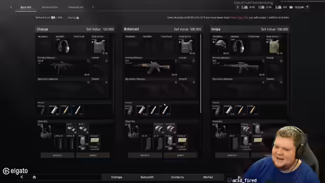 07:54:56Der Streamer erklärt die Mechanik der Kits, die er in Overhaul verwendet. Es geht um die Unterschiede zwischen einem selbst zusammengebauten Kit und dem Ausgabesystem der Spiel, bei dem man Gutscheine für Kits einsetzt. Er macht deutlich, dass es für ihn keinen praktischen Unterschied macht, ob man ein Kit mit Spielgeld oder einem Gutschein bezieht.