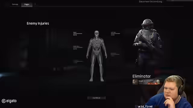 08:02:59Der Streamer analysiert den letzten verlorenen Gunfight detaillierter. Es geht um die Trefferzonen, die Rüstung des Gegners und die eigene Ausrüstung. Er stellt fest, dass der Gegner einen 5er-Helm hatte und seine eigenen Schüsse nicht ausreichend Schaden verursachten. Auch der Gear-Unterschied wird als ausschlaggebend für die schnelle Niederlage genannt.