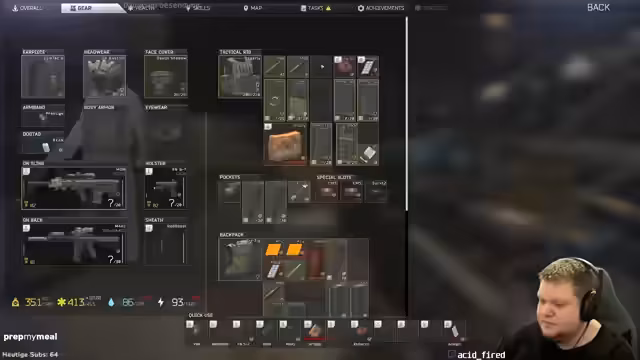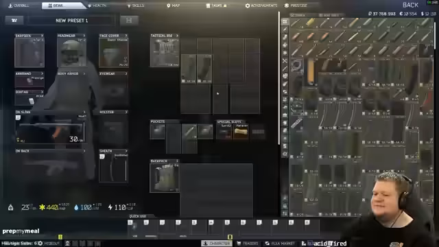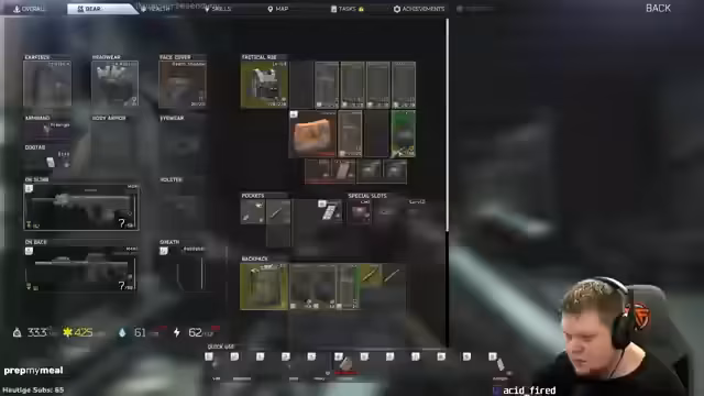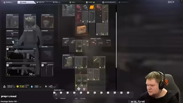 00:01:28Der Streamer erzählt von Fortschritten im Spiel, indem er erwähnt, dass er alles erreicht hat außer bestimmten Kostümen. Er beschreibt einen Kampf, bei dem er aus dem Hinterhalt angegriffen wird und sich in einem taktischen Wettrüsten mit Gegnern befindet. Er äußert seine Freude über den Erhalt neuer Ausrüstungsgegenstände wie CPU-Fans und spricht über seine Vorbereitungen für weiteres Gameplay. Er zeigt auch eine enthusiastische Haltung gegenüber einem neuen Getränksystem, das er im Laden gesehen hat.