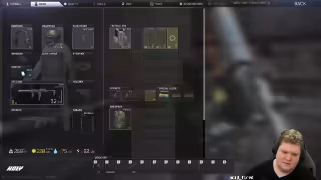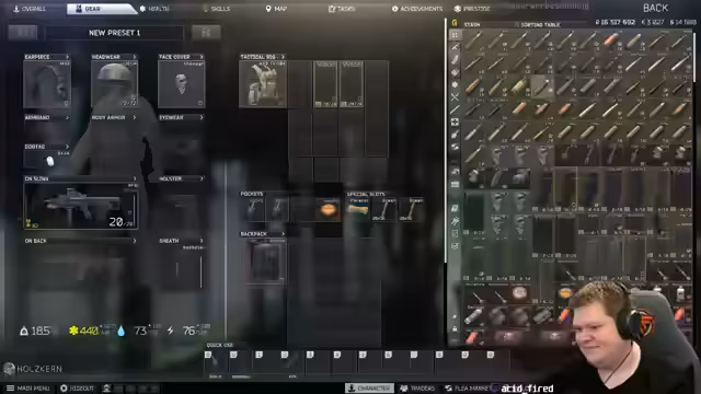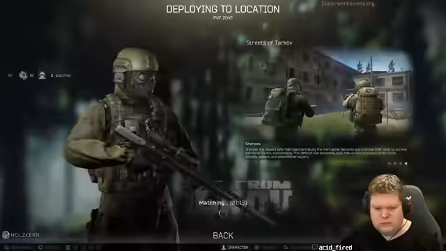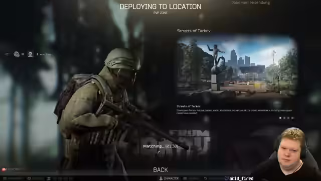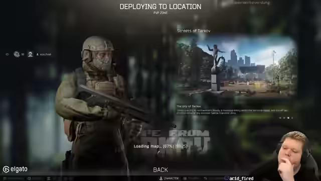 00:00:00Zu Beginn des Streams konzentriert sich das Spielgeschehen intensiv auf den Tarkov-Charakter "acid_fired". In den ersten Minuten wird überlebenswichtige Aktionen gezeigt, wie das Entkommen von Gegnern auf der Straße und das Management von Waffen und Munition. Die Erlebnisse sind geprägt von hohen Adrenalinsituationen, etwa wenn der Streamer plötzlich einen Gegner ohne Vorwarnung vor sich entdeckt, was zu einem schnellen Tod führt. Die erste Runde wird als "Horror" beschrieben, was die hohe Konzentration und den Stress des Spiels widerspiegelt.