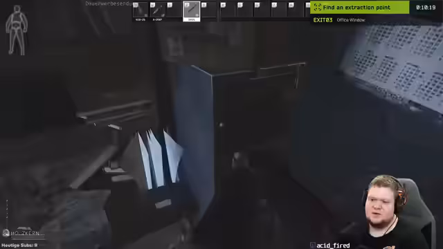 00:10:17Der Streamer ist im Spiel aktiv und beschreibt seine taktischen Bewegungen und Konfrontationen. Er äußert Frustration über das Verhalten anderer Spieler, insbesondere über 'Angleparker', die statisch in Ecken warten und so das Gameplay negativ beeinflussen. Trotzdem gelingt es ihm, Gegner auszuschalten und deren Ausrüstung zu plündern. Dabei bemerkt er ein gut ausgestattetes Target, das er ausgiebig lootet, um seine eigenen Ressourcen aufzustocken.