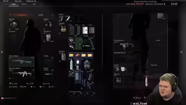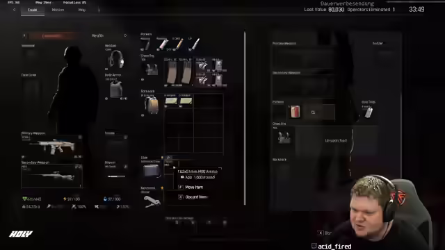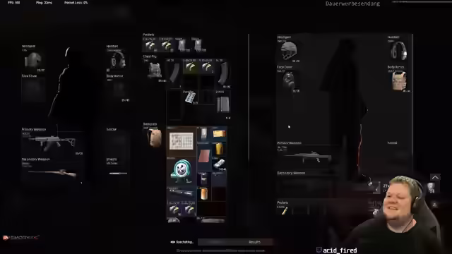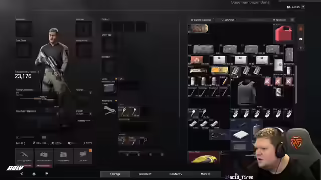 00:20:28Der Streamer trifft sich mit Nico im Spiel und bespricht eine taktische Aufteilung für die Runde. Er hat einen Scanner gefunden und schlägt vor, dass Nico die Kämpfe übernimmt, während er scannt. Sie stellen jedoch fest, dass der Scanner nur für die aktuelle Runde verfügbar ist, was bedeutet, dass sie in jeder Runde zuerst einen neuen Scanner finden müssen. Der Streamer überlegt kurz, sich selbst umzubringen, um schneller neu zu starten, verwirft die Idee aber wieder. Er äußert sich positiv über die Verbesserungen im Spiel und lobt das Movement und die direkten Inputs. Er fügt Nico als Freund hinzu und rüstet sich mit Ausrüstung aus seinem Storage aus. Sie einigen sich darauf, mit normalen Runden zu beginnen, um sich wieder an das Spiel zu gewöhnen. Der Streamer erklärt, wie man Ausrüstung und Items über das Menü konfiguriert und bestückt sich mit einer AKSU, einem Rucksack und weiterer Ausrüstung.