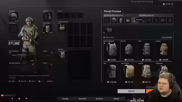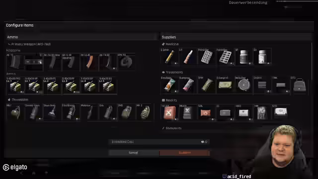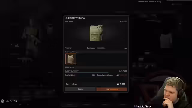 09:19:39Der Streamer wechselt zu Escape from Tarkov und erlebt mehrere technische Unannehmlichkeiten. Er wird von einem anderen Spieler überraschend angegriffen und verliert das Spielziel, repariert aber anschließend Gegenstände für eine Quest. Er äußert Verwirrung über die Spielmechaniken, die ihm einen plötzlichen Tod einbringen, und diskutiert über die Performance des Spiels auf 60 FPS, was ihn stört.