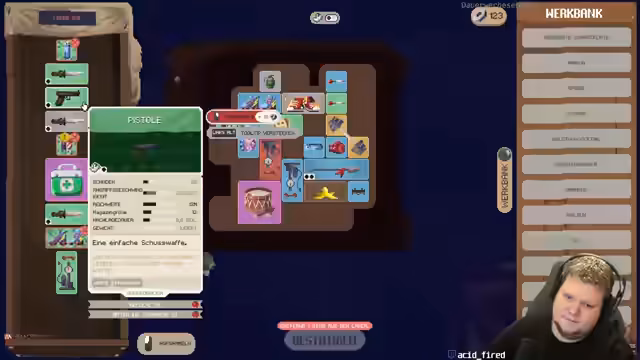 08:30:23Im Spiel Deadly Days konzentriert sich der Streamer auf das Überleben durch das Sammeln und Kombinieren von Items. Er beschreibt den Aufbau seiner Verteidigung mit Pumps, die Banane als Hauptangriffswaffe und die Apfeltasche zur Heilung. Er betont die Wichtigkeit von Platz und eines gut ausgebauten Rucksacks für den Langzeitüberleben. Sein Fokus liegt auf dem Bau spezifischer Waffen wie eines Speers, was jedoch durch das Fehlen von Schlüsselitems wie einer Keule erschwert wird.