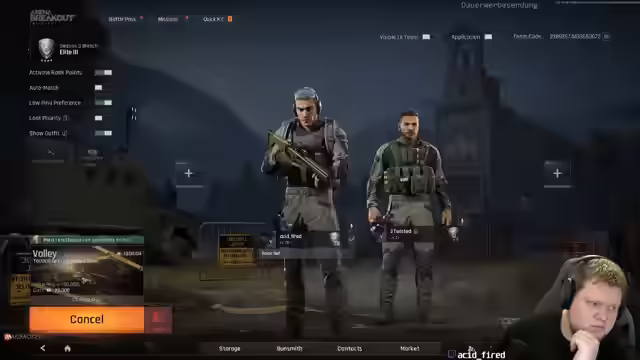 05:13:18Es wird darüber diskutiert, wie ein Gegner trotz vorheriger Geräusche unbemerkt in eine Position gelangen konnte. Es wird ein Lockdown oder eine Verbindung angestrebt. Ein anderer Spielmodus wird als potenziell interessant erachtet, wobei die Befürchtung geäußert wird, dass er sich wie in anderen Spielen zu stark auf schwer zugängliche Gebiete konzentrieren könnte. Es wird erklärt, wie man seine Waffen verliert, wenn man stirbt. Ein Spieler wird aus dem Hinterhalt getötet, was zu einer Analyse der Situation führt. Es wird spekuliert, ob der Schuss durch ein Objekt erfolgte. Die Stärke der gegnerischen Rüstung wird diskutiert. Es wird über die Wahl der Rüstung für den Lockdown-Modus gesprochen. Es wird beschlossen, einen ungewöhnlichen Loadout mit einer MP5 zu verwenden. Es wird festgestellt, dass der Titel des Streams nicht die Wertschätzung für das Spiel widerspiegelt. Ein Spieler äußert, dass er keine eigene Meinung habe. Ein Gegner wird entdeckt und ausgeschaltet. Es wird sich darüber amüsiert, wie ein Gegner trotz mehrerer Treffer überleben konnte. Ein Geschenk wird gefunden und dessen Wert festgestellt. Es wird festgestellt, dass man rote Gegenstände findet. Ein Ziel wird identifiziert und eine Strategie entwickelt, um es zu erreichen. Es wird festgestellt, dass man keinen Rucksack tragen darf, um zu extrahieren, was zu einer Lösung führt, den Rucksack in einer Truhe zu verstauen. Die Mechanik, für das Töten von Spielern belohnt zu werden, wird gelobt. Es wird festgestellt, dass man durch das Töten von Spielern Gegenstände nach Hause schicken kann. Ein Spieler überlebt trotz mehrerer Treffer in den Kopf. Es wird über die Anzahl der Karten und die Häufigkeit von PvP-Kämpfen gesprochen.