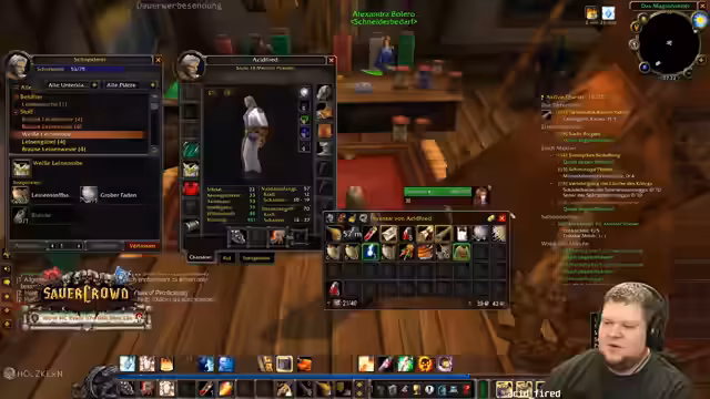 00:00:44Der Livestream beginnt mit Vorbereitungen im Spiel. Acid Fired diskutiert technische Aspekte wie Browser-Nutzung und die Installation einer neuen CPU. Er widmet sich dem Crafting eines besseren Zauberstabs, um seinen Damage-Output zu erhöhen, und reflektiert über die Herausforderungen der Verzauberkunst (Level 54 Silber). Dabei erwähnt er das Event-Verbot der Auktionshausnutzung, das sein Fortschrittstempo beeinflusst. Der Fokus liegt auf dem Grinden von Ressourcen in Loch Modan und dem Sammeln von Quest-Items wie Ebergedärme.