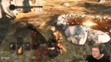 03:27:33Der Streamer stellt sich dem Verfolger, einem der ersten Bosse, und testet verschiedene Taktiken, um ihn zu besiegen. Er experimentiert mit dem Einsatz von Ballisten, Parry-Versuchen und der Nutzung von Heiltränken ('Estus Flasks'). Er ist frustriert, weil er Schwierigkeiten hat, die Ausdauer und den Abstand zum Boss richtig zu managen. Nach mehreren gescheiterten Versuchen entdeckt er eine potenzielle Taktik, bei der er den Boss zu einer Balliste lockt, die jedoch ebenfalls nur bedingt funktioniert. Trotzdem zeigt er sich entschlossen, den Kampf zu meistern, und plant weitere Übungen.