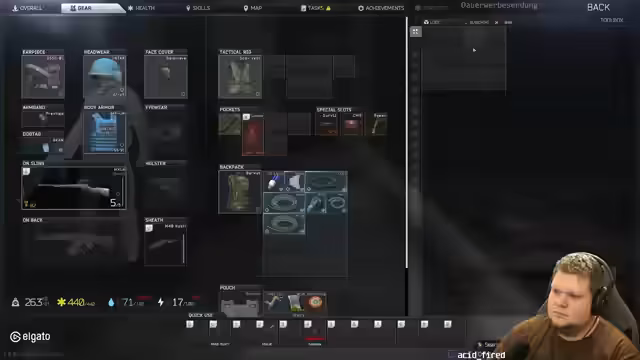 03:27:33Die Mission führt den Streamer erneut nach Interchange. Er loottet, obwohl er RRLP hat, und ist frustriert, weil er mehr Platz im Inventar bräuchte. In den Pausen spricht er über holy und Sub-Drops in Escape from Tarkov und erwähnt, dass man derzeit keine Subs ausgeben kann. Auch persönliche Einblicke in seine Online-Erfahrungen seit 1998 rundet das Gespräch ab.
