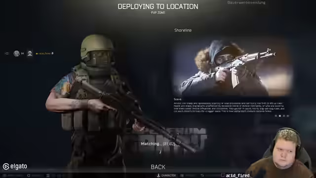 01:00:14Der Streamer kehrt ins Spiel zurück und startet einen Raid auf der Map Reserve. Er hat das Ziel, die Event-Quest 'Banker Part 2' abzuschließen, bei der Gegner in einem Korridor eliminiert werden werden. Er erkundet die Fuel Storage-Area, wo er auf mehrere Gegner trifft. Nach einem hitzigen Gefecht, bei dem seine Munition knapp wird, gelingt es ihm, einen Gegner mit einem präzisen Kopfschuss auszuschalten, aber er muss sich vor den übrigen Gegnern zurückziehen.