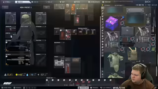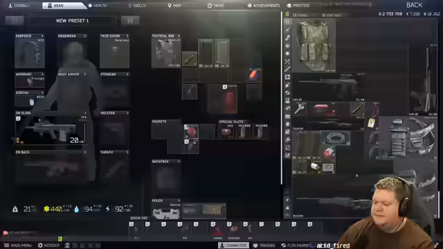 06:52:29Ein großer Teil des Streams ist dem Gameplay auf der Map 'Quest Control' gewidmet. Der Streamer erledigt verschiedene Quests und versucht, Loot wie einen RBS-T-Key und einen T90M Commander Control Panel zu finden. Er spricht offen über seine Fehler, wie den Verlust des RBS-T-Keys, und äußert Frust über den langen Nachladevorgang der SKS. Dennoch ist die Session positiv geprägt, da er 15 Quests abschließt, 4 Millionen Rubel verdient und einen Vertex im Wert von etwa 1 Million Rubel findet.