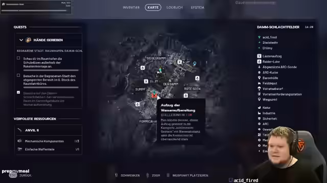 00:00:00Der Stream konzentriert sich auf die Suche nach Kaktusfeigen im Spiel Arc Raiders, die für das Leveln des Scrappy benötigt werden. Der Spieler erkundet gezielt das Gebiet des Stromerzeuger-Komplexes und Umgebung, nachdem zuvor erfolglos gesucht wurde. Es werden verschiedene Spots auf der Karte Damm getestet, um die Ressourcen zu finden. Neben den Kaktusfeigen wird auch nach Oliven gesammelt, die ebenfalls für Scrappy wichtig sind. Das Farming wird als anstrengend beschrieben, da die Ressourcen selten sind und oft Zeit in Runden investiert werden muss, ohne Erfolg zu haben.