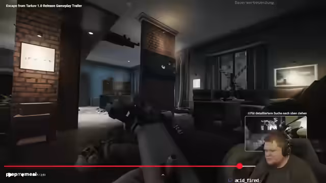 14:10:37Der Streamer versucht, sich auf den aktuellen Raid zu konzentrieren, besonders nach einem misslungenen Factory-Lauf, und erklärt, warum er nicht aktiv im Chat ist. Er erwähnt, dass bei Spielen wie Delta Force und Agrader die Konzentration leichter fällt, aber bei Tarkov, wo ständig viel passiert, ist es schwieriger. Es wird der Wunsch geäußert, im Trio nicht ständig der Schuldige zu sein, wenn man auf eine unerwünschte Web-Seite muss, was zuvor bei Factory als nervig empfunden wurde. Ein Zuschauer fragt nach den Einstellungen, und der Streamer ist bereit, sofort zu helfen. Es wird spekuliert, ob Vares der Host von 'Rares für Bares' ist oder einfach jemand, der keine Genitalien hat. Der Geruch des Essens wird gelobt, und die Notwendigkeit, sich das Essen zu verdienen, bevor man hungrig ins Bett geht, wird humorvoll betont. Es wird erwähnt, dass eine Totz-Waffe, die zuvor an Mechanic Dully verkauft wurde, für eine Quest hätte behalten werden sollen. Der Streamer vermisst sein gemütliches Heim-Setup, insbesondere seine Fußauflage und eine USB-Kissenheizung für die Füße, die das Aufstehen überflüssig macht.