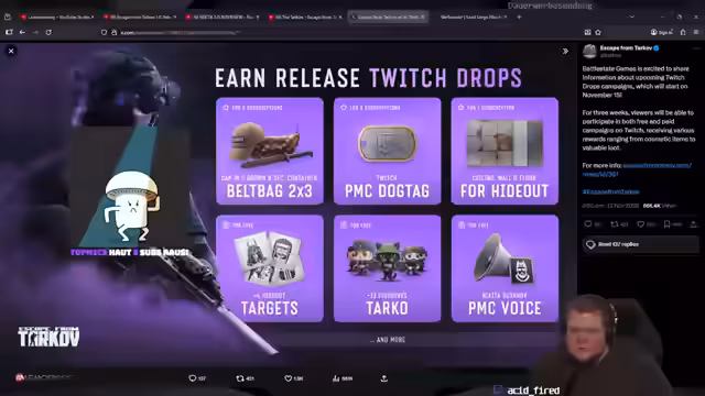 13:16:17Der Streamer teilt seine persönlichen Ziele mit, die er sich vor dem Release von Tarkov 1.0 gesetzt hat: Twitch-Partner zu werden und an einer coolen LAN-Party wie der aktuellen teilzunehmen. Er äußert seine Zufriedenheit über die Erreichung dieser Ziele. Die Diskussion über die Paidrops setzt sich fort, wobei die Serverüberlastung der BSG-Server als Hauptgrund für die Schwierigkeiten beim Erhalt der Drops genannt wird. Es wird festgestellt, dass einige Spieler die Drops erhalten haben, während die Mehrheit der Community weiterhin Probleme hat. Der Streamer bemerkt, dass die Stille im Chat oft ein Indikator für lange Matching-Zeiten oder Login-Probleme der Zuschauer ist. Trotz der Serverprobleme konnte der Streamer selbst durchgängig spielen, hatte jedoch mit technischen Problemen an seinem Ende zu kämpfen, die seine Hardware überlasteten. Er betont, dass die Kritik an BSG berechtigt ist, rät den Zuschauern aber, sich nicht zu sehr darüber aufzuregen, um die eigene Stimmung nicht zu verderben.