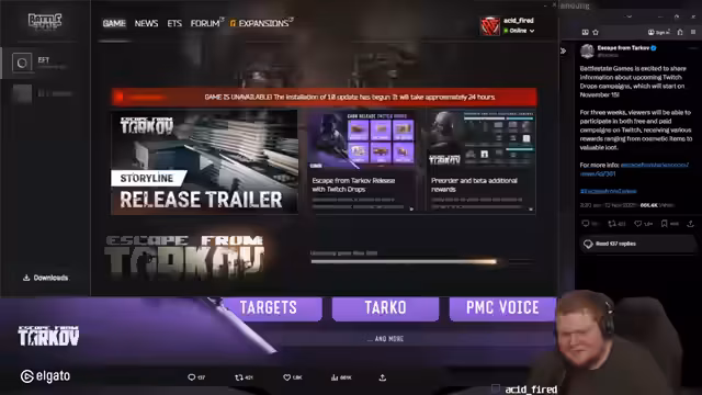 05:19:17Die große Neuigkeit ist, dass Escape from Tarkov offiziell auf Steam veröffentlicht wird. Es wird eine spezielle Steam-Edition geben, da DLCs nicht direkt verkauft werden können. Ein neuer Trailer wird angekündigt, der weitere Inhalte und Überraschungen zeigen soll. Die Community wird aufgefordert, den Launcher immer wieder neu zu starten, da es zu Beginn des Releases oft zu Überlastungen kommt. Es wird über die Erweiterung der Karte Factory gesprochen und dass dies nur ein kleiner Teil dessen ist, was die Entwickler vorbereitet haben. Das Ziel ist es, das gesamte Universum und Publikum zu begeistern. Features wie VoIP sind bereits implementiert. Kurz nach der Ankündigung des Steam-Releases kommt es zu den erwarteten technischen Problemen: Der Battlestate Games Launcher ist überlastet, und viele Spieler können sich nicht einloggen oder das Update herunterladen. Die Streamer versuchen, die Situation zu managen und die Community zu beruhigen, während sie selbst auf den Download warten. Die Drops-Kampagne ist aktiv, was zu einer Flut von Subscriptions führt, die die Streamer kaum verarbeiten können.