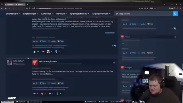 14:33:44Der Streamer schaut sich die Steam-Bewertungen für Escape from Tarkov an, die größtenteils negativ ausfallen. Kritisiert wird, dass die Server am Releasetag seit neun Stunden down sind und es nicht einmal möglich ist, ins Hauptmenü zu gelangen. Die Möglichkeit einer Geld-zurück-Option bei Steam wird erwähnt. Ein Nutzer mit nur 0,3 Spielstunden beschreibt die Situation als 'original' und schlägt vor, dass dies eine Auszeichnung für 'andere Kunden sagten auch' sein sollte. Ein weiterer Nutzer kann das Spiel immer noch nicht starten, hatte aber 'mehr Spalz als mit Abi'. Es wird sich über die schlechte Steam-Veröffentlichung gewundert. Ein Spieler berichtet von 21 Stunden 'Error 0', was als Übertreibung abgetan wird, da das Spiel erst mittags veröffentlicht wurde. Trotz bester Hardware läuft das Spiel 'wie Müll'. Der Streamer erwähnt seinen Partner Memory PC für PC-Käufe, weist aber darauf hin, dass selbst beste Hardware bei den aktuellen Problemen nichts nützt. Ein Spieler, der das Spiel seit 800 Stunden über den BSK Launcher ohne Probleme spielte, hat nach der Steam-Installation nur noch Probleme. Die Diskussion über die Steam-Bewertungen wird als ebenso unterhaltsam wie das Spiel selbst empfunden, da die Serverprobleme und die Unfähigkeit, Accounts zu erstellen oder das Spiel zu starten, sich hinziehen. Die Bugs bei den ersten Quests und die Enttäuschung über den 'Unheard Edition-Skandal' werden als Gründe für negative Bewertungen genannt. Der Streamer hätte sich eine positive Rezension gewünscht, hält den Launch aber für 'katastrophal' und vergleicht ihn mit einem Neuwagen ohne Motoröl.