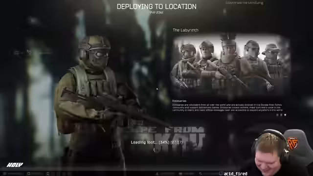01:32:50Der Streamer stellt fest, dass er eine Karte für den Labyrinth-Zugang verloren hat, was ein wichtiges Element für den aktuellen Raid ist. Er diskutiert im Chat mit anderen Spielern über die Kartenverlustregel und stellt fest, dass Karten verloren gehen, wenn man extrahiert, aber nicht, wenn man stirbt. Er ist sich unsicher, ob er eine oder zwei Karten dabei hatte.