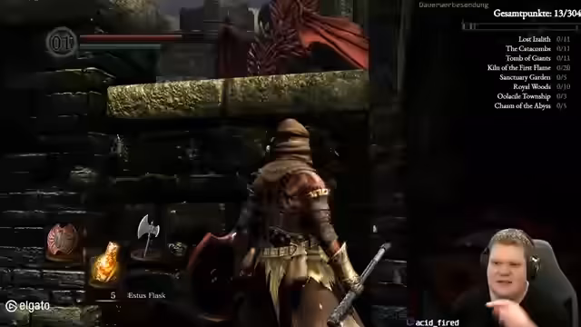 02:34:59Der Streamer plant, an einem No-Death-Run für Dark Souls teilzunehmen, bei dem er Bosse besiegen und Punkte sammeln muss. Er nennt sein Ziel, mindestens 5 Punkte zu erreichen, was ihm einen Erfolg bedeuten würde. Er erwähnt, dass er erst eine Stunde Spielzeit hat und dieses Unterfangen mutig erscheint.